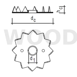 | dc[mm] | d1[mm] | h1[mm] | hc[mm] | t[mm] | ||