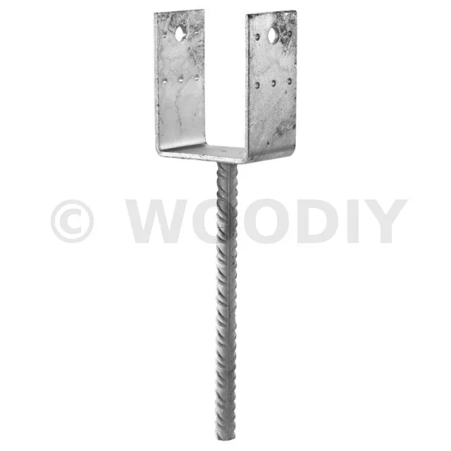 | Pieds de poteau en U à sceller – Réf. PPD70/70G, 80/70G, 90/70G, 100/70G, 120/90G, 140/90G‑R | Réglage de hauteur par tige • galvanisation à chaud 5 mm • largeurs 70→140 mm • forte reprise en soulèvement (≈2,8 t) • pose simple avant coulage. |
