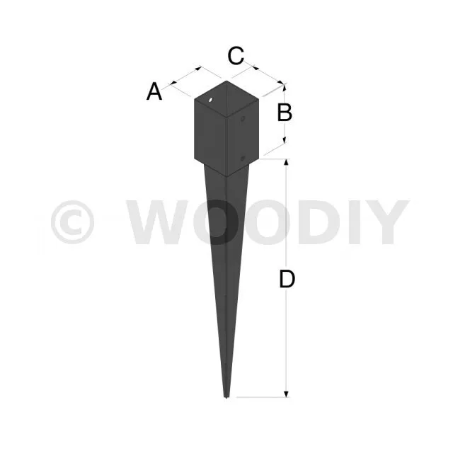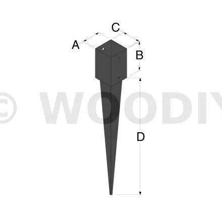Pied de poteau carré à enfoncer - Finition NOIRE - Réf. PPJNET90/620