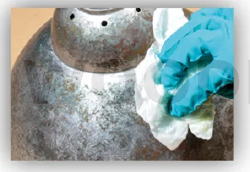 2 - Sur supports ferreux bruts, la formation de rouille doit s’amorcer rapidement si le support n’est pas protégé. Dans le cas contraire, poncer le support pour revenir au métal brut avant d’appliquer le RUST SPIRIT.