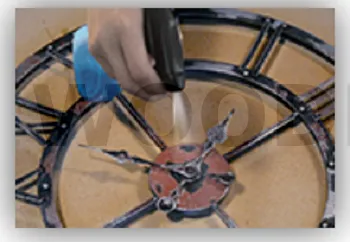1 - Appliquer le RUST SPIRIT sur les supports sains, secs et propres destinés à être décorés. Cette application peut être effectuée directement à l’aide du pulvérisateur ou d’un outil de transfert tel que chiffon, brosse, éponge,… permettant ainsi d’obtenir des effets décoratifs complémentaires.