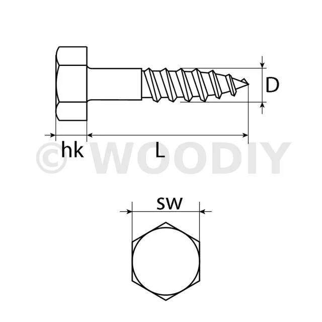 DIN 571 est une norme allemande pour une vis à bois hexagonale. Les vis DIN (Deutsches Institut für Normung) sont des standards techniques reconnus en Allemagne et internationalement pour leur précision et leur qualité.