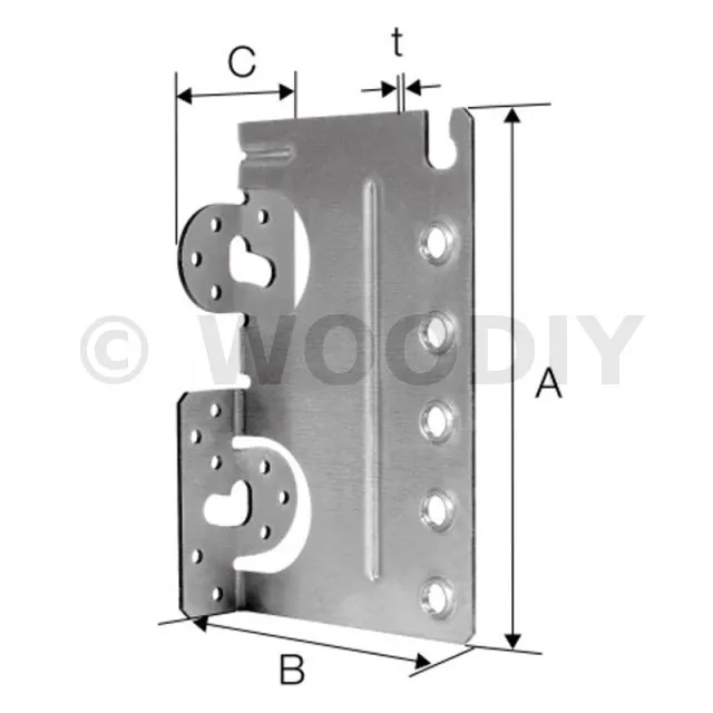 | Hauteur [mm] | Largeur | Hauteur | A | B | C | t | Ø11 | Ø5 | Ø10.5 | ||||