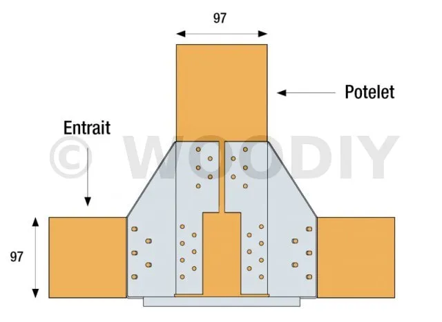 Bois sur bois - Porteur ≥ 97mm - 1 empannon + 1 arêtier
