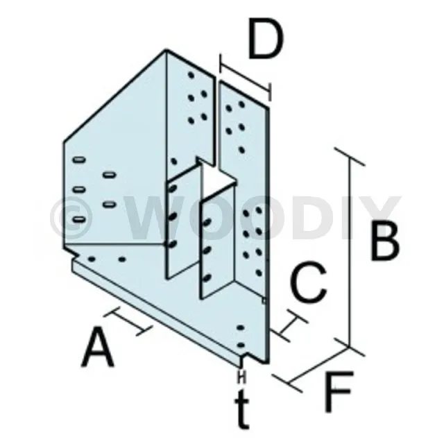 | A | B | C | D | F | t | Ø5 [mm] | Ø13 [mm] | Ø5 [mm] | Ø5 x 7,5 [mm] | Ø5 [mm] | |