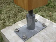 Le pied de poteau PGS a été conçu pour reprendre des charges verticales et horizontales. Il peut supporter de fortes charges en compression (jusqu’à 3.7 tonnes). Son caractère réglable permet un ajustement de la hauteur du poteau bois de 130 à 195 mm par rapport au sol. Enfin, la connexion au poteau est réalisée par un tube Ø24 mm qui s’insère dans le poteau pour un résultat discret.