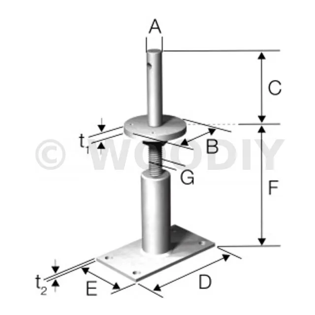 Pied de poteau tubulaire réglable fortes charges