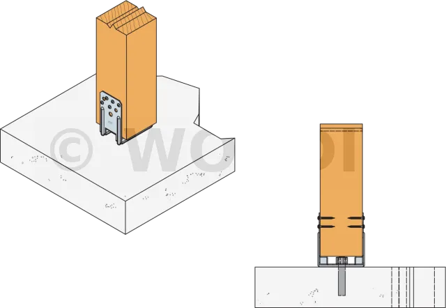 Sur poteau bois :