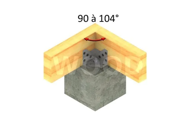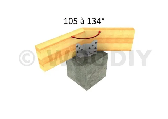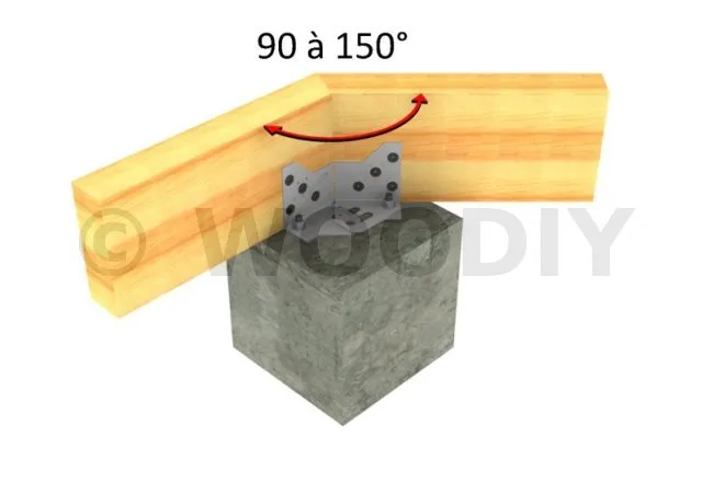 L’équerre ABF120 est préconisée dans la réalisation d’une ceinture porteuse de terrasse bois sur plot de béton. Elle est réglable en angle sur chantier et permet d’obtenir un angle intérieur de 90° à 150°. Des repères visuels sur la pièce permettent d’obtenir un ajustement à angle souhaité.