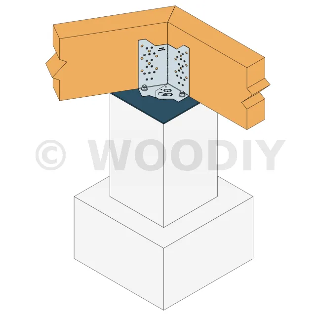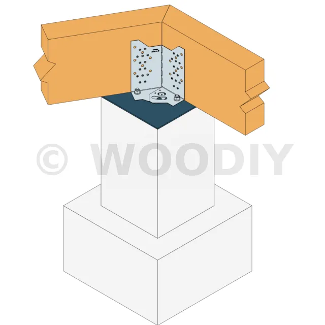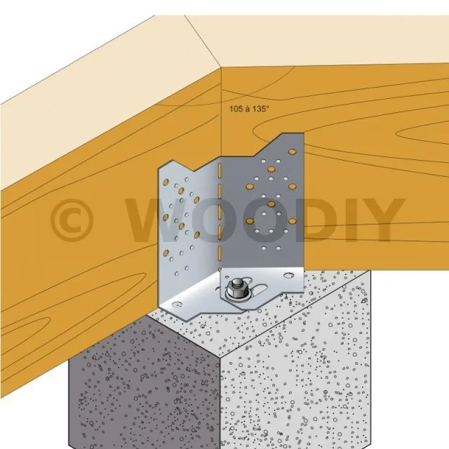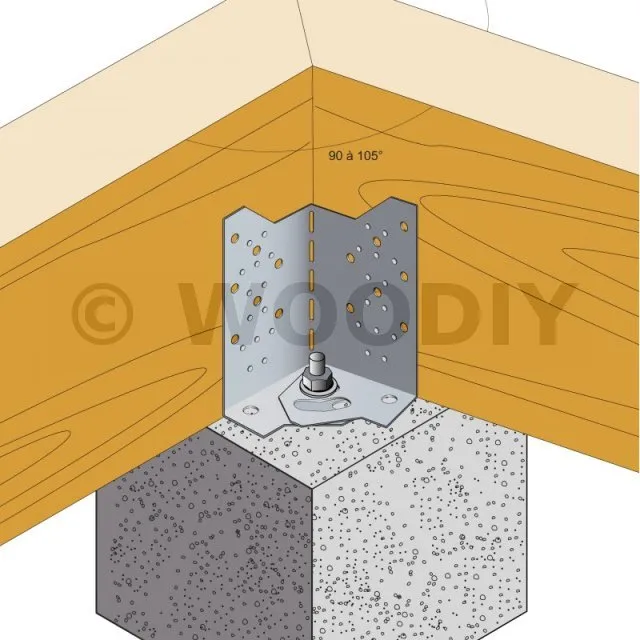 - Fixation de poutre bois (lamellé collé, bois massif...) de hauteur 235 à 310 mm sur plots béton,