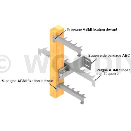 La griffe ABMI permet la fixation de l’isolant contre le support dans le cas d’une Isolation Thermique par l’Extérieur (ITE). Une griffe ABMI est nécessaire sur chaque équerre de bardage EBC.