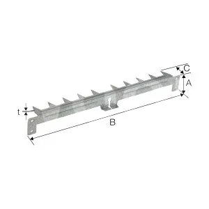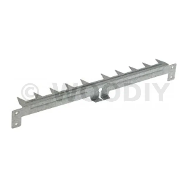 Il faut compter une griffe par équerre pour une bonne fixation de l’isolant. Peut-être coupée pour obtenir deux peignes à fixer sur les chevrons grâce aux deux ailettes qui permettront le maintien de la seconde couche d’isolation entre chevrons.