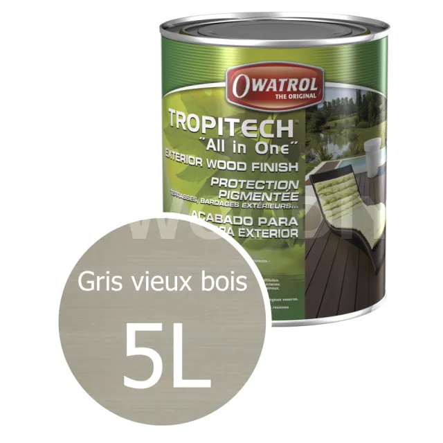 TROPITECH "All in One" : protection teintée LONGUE DUREE pour terrasses et bardages. Phase aqueuse - Réf. 429
