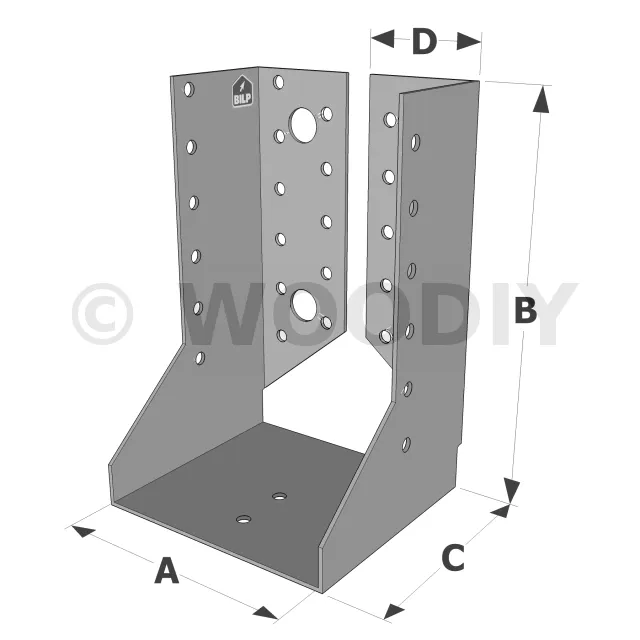 Attention, pour les sabots SAIX à ailes intérieures de largeurs inférieures à 80 mm, les ailes sont recoupées sur la hauteur dans l’axe des perçages de boulons. La fixation sur le porteur est donc uniquement possible par pointes ou vis dans la ligne verticale de perçages Ø5 proche du pli.