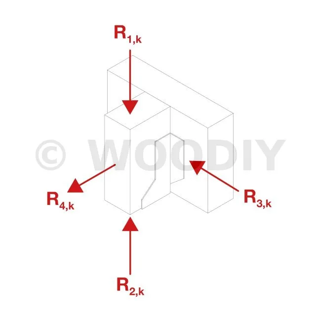 Les pointes sont introduites dans la poutre portée avec un angle de 45°. Deux pointes au minimum sont nécessaires par membrure pour un bon maintien, il sera parfois possible, en fonction de la hauteur de membrure, d‘en placer quatre.
