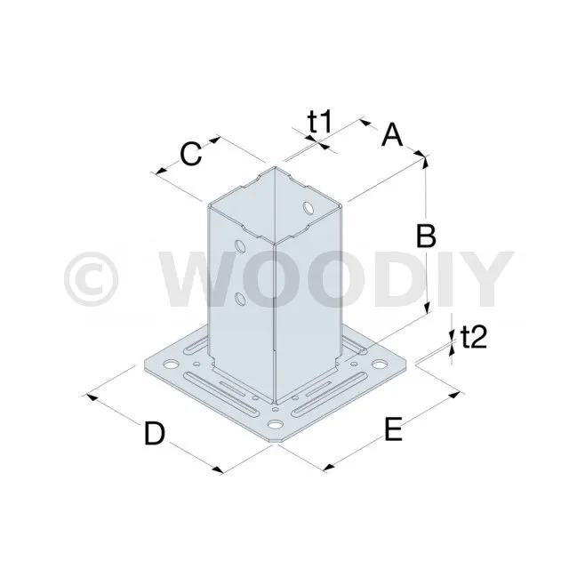 Pied de poteau carré à boulonner - Finition GALVANISEE - Réf. PPJBT120