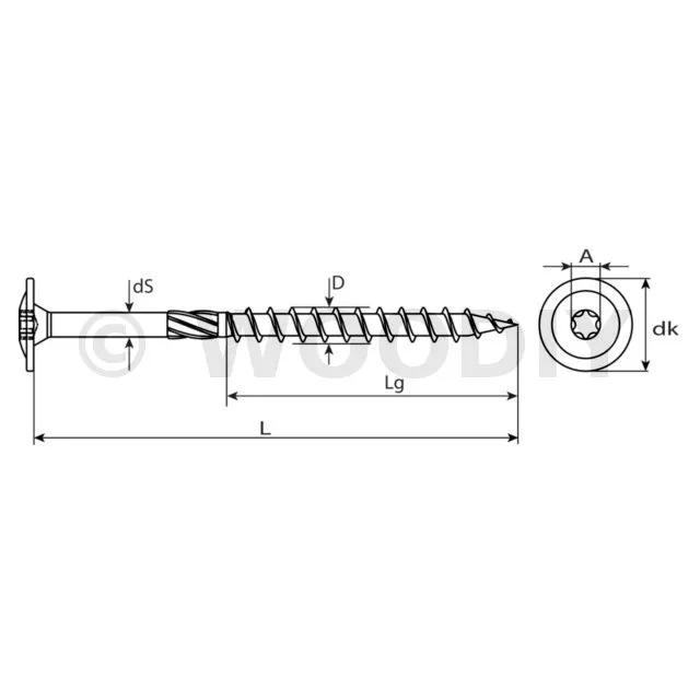 La vis charpentier tête large bombée et utilisée pour les liaisons bois/bois dans la construction bois (par ex. isolation de toiture, cadres en bois, combles, construction d’éléments, préfabriqué, escaliers etc.).