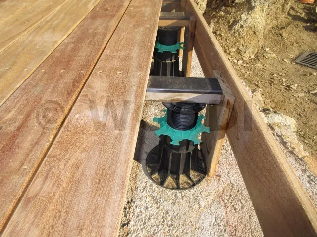 - La structure de la terrasse posée sur plot doit être faite avec des lambourdes avec des matières bois ou métal et non composites.