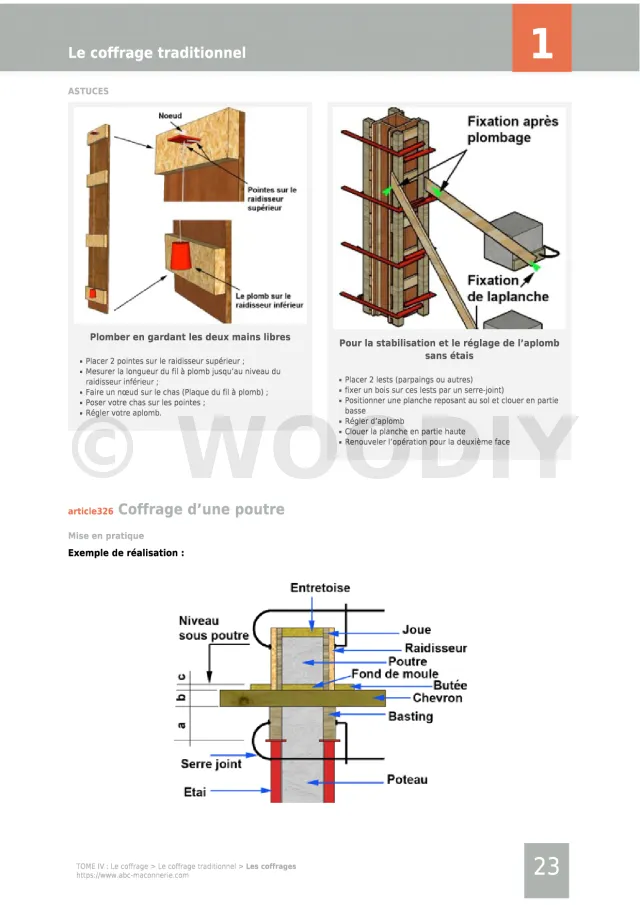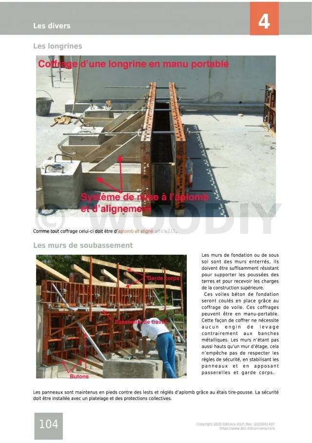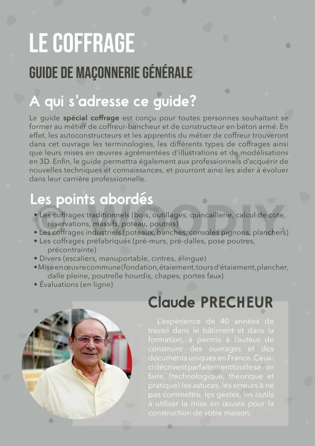 Le guide « Le coffrage » est le tome IV du pack « Expert ». Cet ouvrage est la mise en pratique des théories et astuces dans le Tome I, et est complémentaire avec le Tome III, du fait que le façonnage d’un ouvrage en maçonnerie nécessite un coffrage efficace.