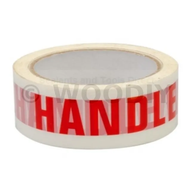 Lettres rouges sur fond blanc indiquant la mention en anglais HANDLE WITH CARE