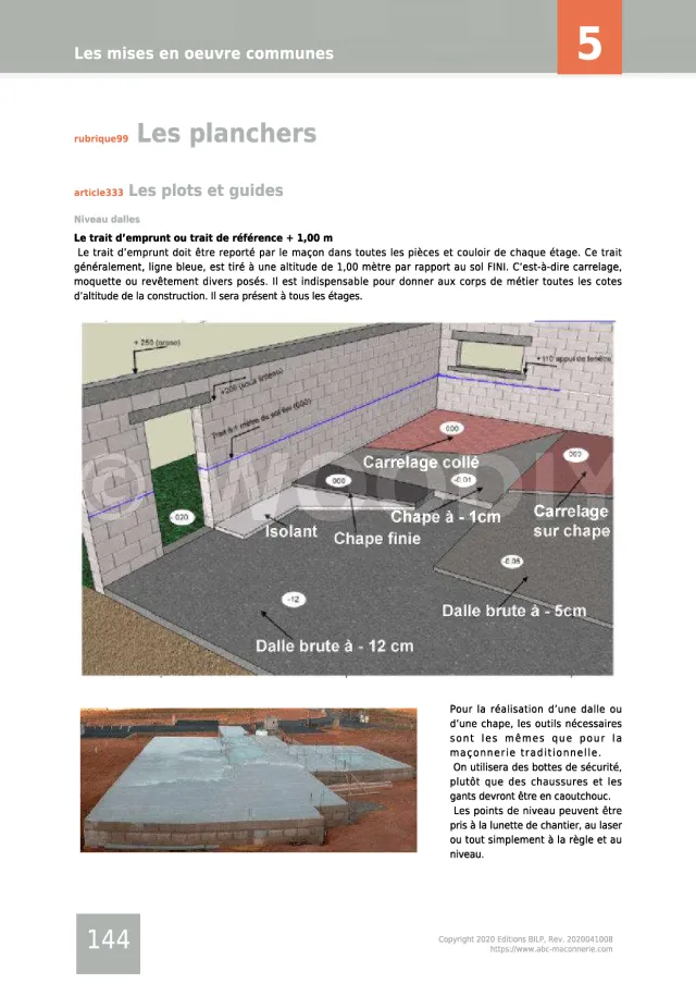 - Leçon 5 : Le trait de niveau + 1,00 m