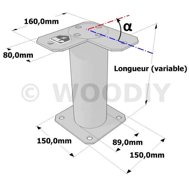 Poteau structurel OSP - D89mm - Platine haute en angle 80x160mm - Embase 150x150mm
