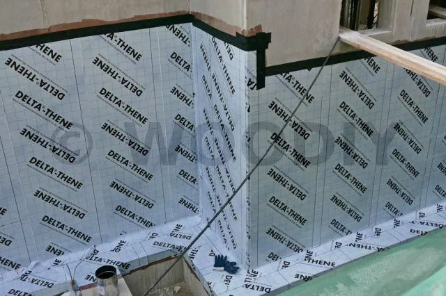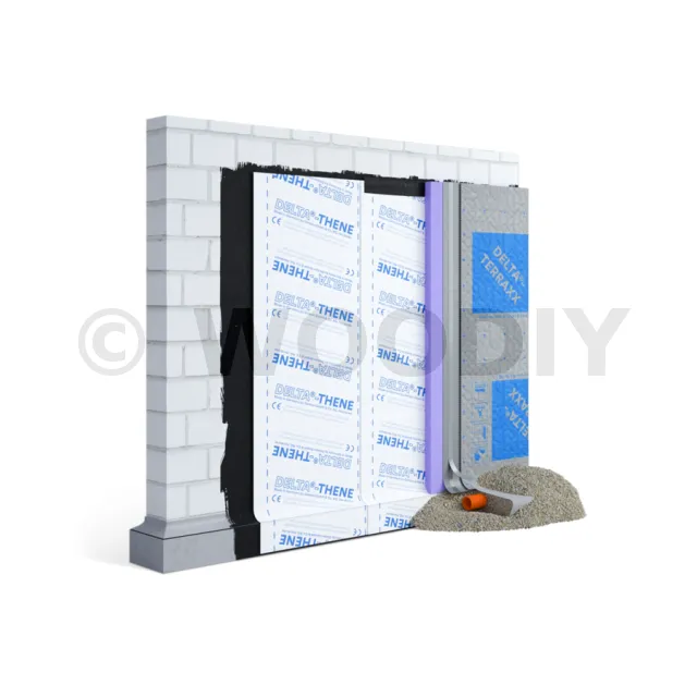 - DELTA®-THENE est un produit d’étanchéité rapide et facile à poser. Il est appliqué sur une paroi préalablement traitée avec le primaire d’accrochage PRIMER DELTA®-THENE. Sa structure quadrillée de 10 cm permet une découpe facile et précise des bandes à l’aide d’un cutter. Il est adapté à toutes les tranchées, même les plus étroites, et offre une étanchéité durable et fiable.