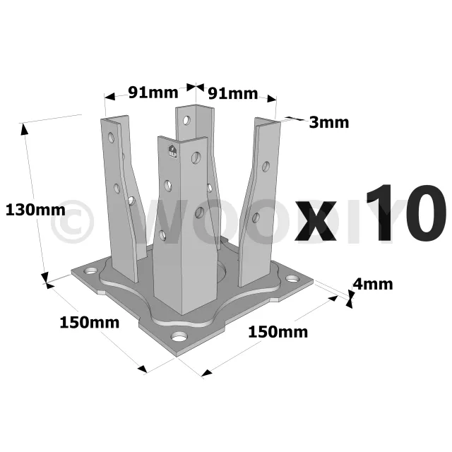 - Cheville mécanique : goujon WA M10-78/5 ou alternative FM-753 CRACK 3DG M10x90/10 (revêtement adapté pour un usage en extérieur).