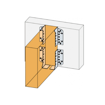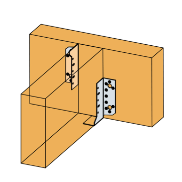 Demi-sabots installés en diagonale et associés à une vis entièrement filetée : - 1 SJHR + 1 SJHR-F + 1 ESCRFTZ8.0,