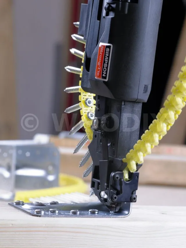 Les vis en bande CSA-T facilitent la mise en œuvre des équerres et des connecteurs sur support bois. La tête conique assure un contact complet avec le connecteur ce qui favorise la transmission des efforts.