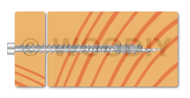 - Une vis dont l’axe est de 45 à 90° du fil du bois dans le cas des ESCR(XXX), et à 90° du fil du bois pour les autres vis.