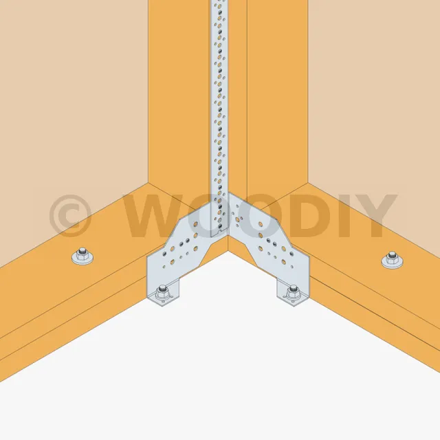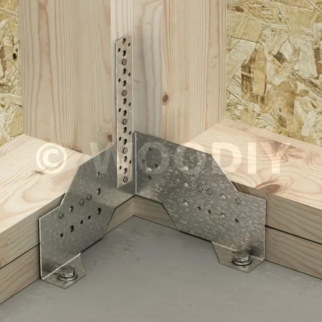 Le connecteur pour panneau bois FCC assure la liaison de murs d‘ossature sur dalle béton. Les trous de pointes et de boulons permettent d‘adapter la fixation en fonction des configurations. Cette référence peut éventuellement être associée à un feuillard perforé type FP30 à fixer sur les montants.