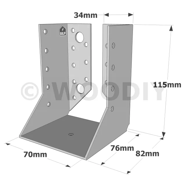 On admet une tolérance de 2 mm maximum entre l‘épaisseur du bois et la largeur du sabot. Exemple : un sabot plié à 76 mm peut porter une épaisseur de bois de 74 mm.