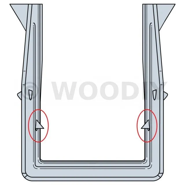 3. Ajuster l’étrier par rapport aux tracés : l’étrier doit être légèrement plus ouvert en haut qu’en bas, pour faciliter l’installation de la poutre portée.
