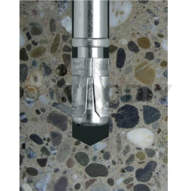 Lors de l’application du couple de serrage, le cône remonte dans la bague d’expansion qui provoque une ruptures des segments en s’ouvrant et viennent se plaquer contre la paroi, entraînant ainsi une adhérence par frottement sur le matériau support. Il en résulte un ancrage par expansion par vissage à couple contrôlé.