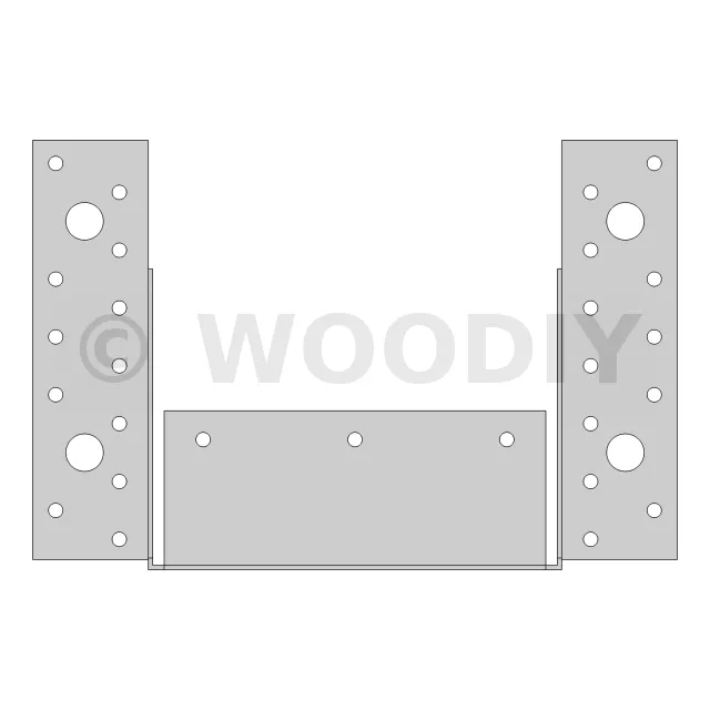 - Perçages sur portéFlancs : 6Ø5 ; 8Ø5x7.5 - Fond : 10Ø5