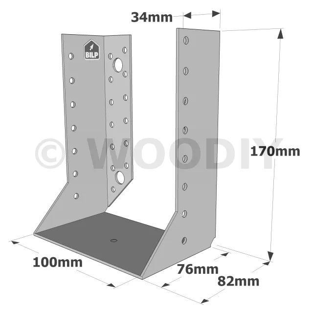 On admet une tolérance de 2 mm maximum entre l‘épaisseur du bois et la largeur du sabot. Exemple : un sabot plié à 76 mm peut porter une épaisseur de bois de 74 mm.