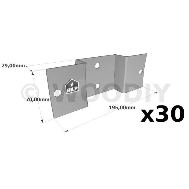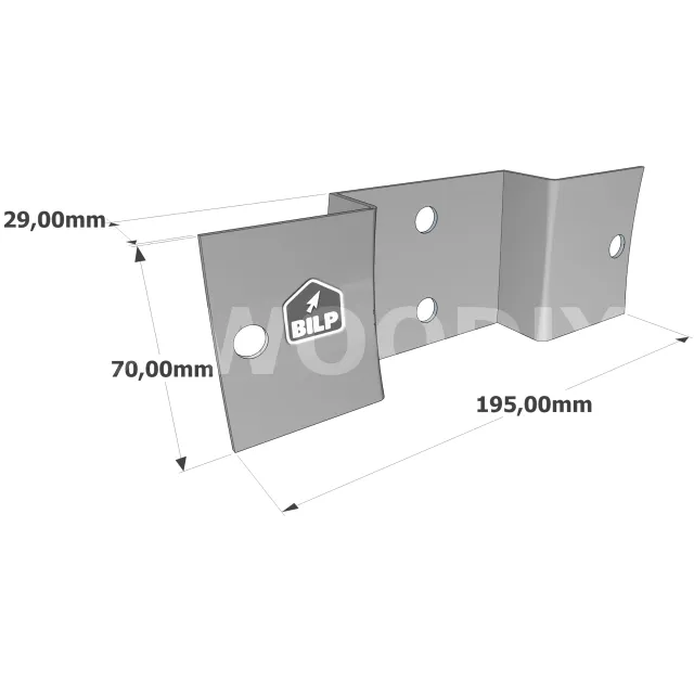 Equerre plate pour bois ronds - à fixer sur des poteaux en bois carrés - 195x70x29mm - Réf. RFCP80_30