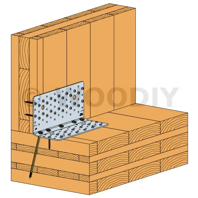 3- Insérer ensuite les vis filetage total dans les perçages proches du pli à un angle d’environ 70° (l’utilisation d’un gabarit est recommandé pour plus de rapidité et de précision).