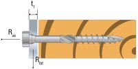 | Moment d’écoulement plastique caractéristique - My,k [Nm] | Paramètre de résistance caractéristique à l’arrachement - fax,k,90° [N/mm²] | Paramètre de résistance caractéristique à la traversée de tête - fhead,k [N/mm²] | Résistance caractéristique en traction - ftens,k [kN] | Ratio de torsion | |