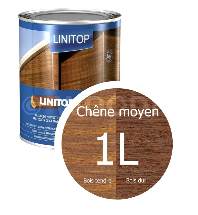 LINITOP SOLID est une lasure de protection haute performance, satiné-mat, pour bois intérieur et extérieur. Elle décore et offre une protection de longue durée à vos fenêtres, portes, huisseries, bardages, clôtures, balustrades, chalets,....grâce à sa double protection haut extrait sec.