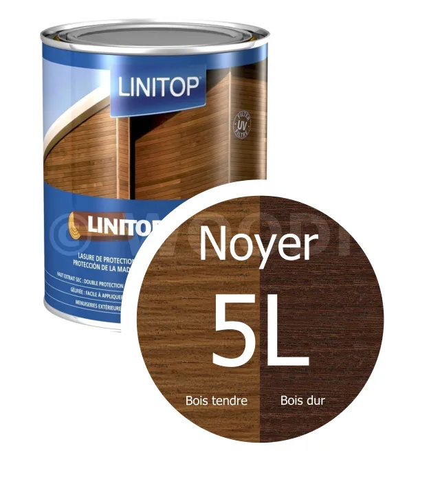 LINITOP SOLID est une lasure de protection haute performance, satiné-mat, pour bois intérieur et extérieur. Elle décore et offre une protection de longue durée à vos fenêtres, portes, huisseries, bardages, clôtures, balustrades, chalets,....grâce à sa double protection haut extrait sec.