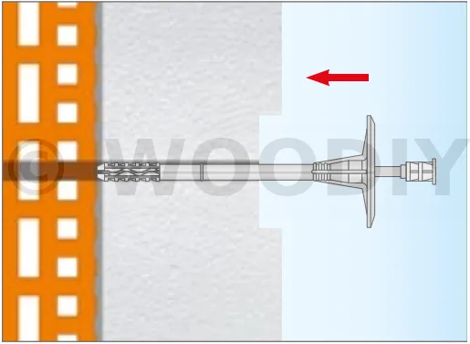 Fixation de l’isolation en polystyrène PSE (polystyrène expansé), PSX (polystyrène extrudé), laine minérale et feutre à lamelles MW.