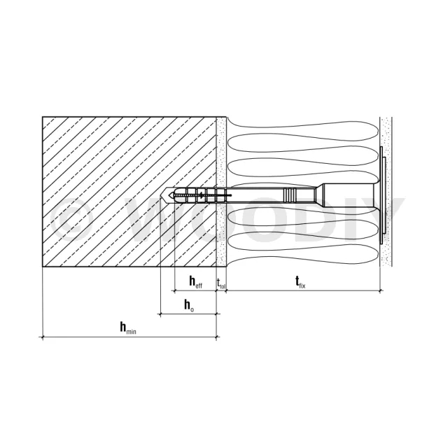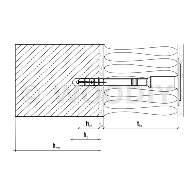Cheville d’isolation à visser avec clou métal - faible profondeur d’ancrage - Diamètre 8mm