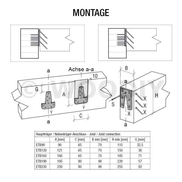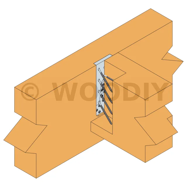 - Fixation bois/bois - type poteau/poutrePorteur : 6 x CNA4,0X50 ; Porté : 4 x vis SPAX-S5,0x80