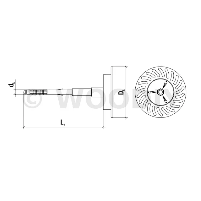 Cheville d’isolation à visser avec clou métal et rondelle d’appui télescopique pour la laine minérale - Diamètre 8mm
