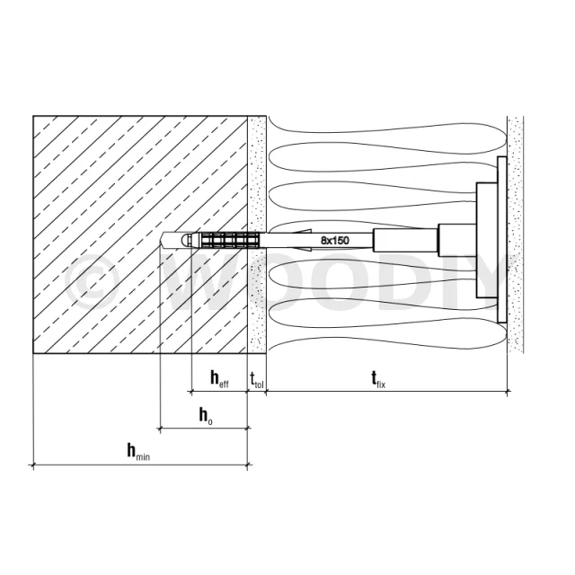 - Profondeur d’ancrage (hef)Substrat cat. A B C D : 35mm