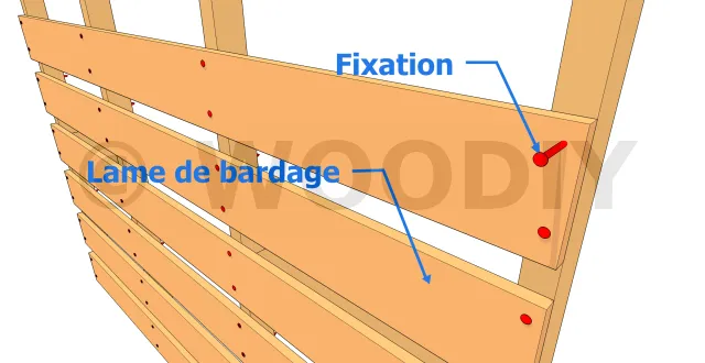 | Vis pour bardage HECO-UNIX-top D5 L= 2,5 x épaisseur de la lame de bardage | Maintien et fixation des lames de bardage | Si la largeur de la lame est inférieure à 120 mm, une seule fixation suffira. Autrement, il faudra compter 2 fixation à chaque extrémité de la lame et au droit de chaque montant. | Commander |