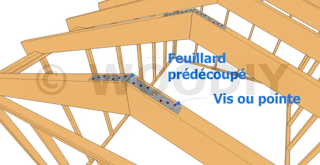 | Feuillard prédécoupé Longueur (LTSA) 457 mm | Un feuillard par assemblage et fixé au-dessus des têtes de chevrons. | Commander |