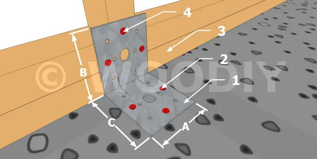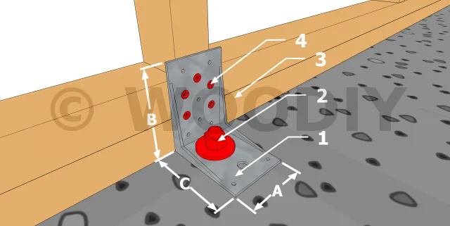 | Équerres renforcées ABR105 Largeur (A) 90 mm x Hauteur (B) 105 mm x Largeur (C) 105 mm d’épaisseur 3 mm | Maintien et fixation définitive des lisses basses | Les équerres devront être espacées d’environ 1 m. L’idéal serait de fixer une équerre au droit de chaque montant. Au niveau de la lisse basse, l’équerre est fixée par des vis tandis que sur la dalle en béton, l’équerre pourra être fixée par des goujons, des vis HECO MULTI-MONTI à tête hexagonale, des vis HECO MULTI-MONTI à tête ronde, par des vis HECO MULTI-MONTI à vis d’ancrage pour rails de montage ou par une tige filetée scellée au scellement chimique. | Commander |